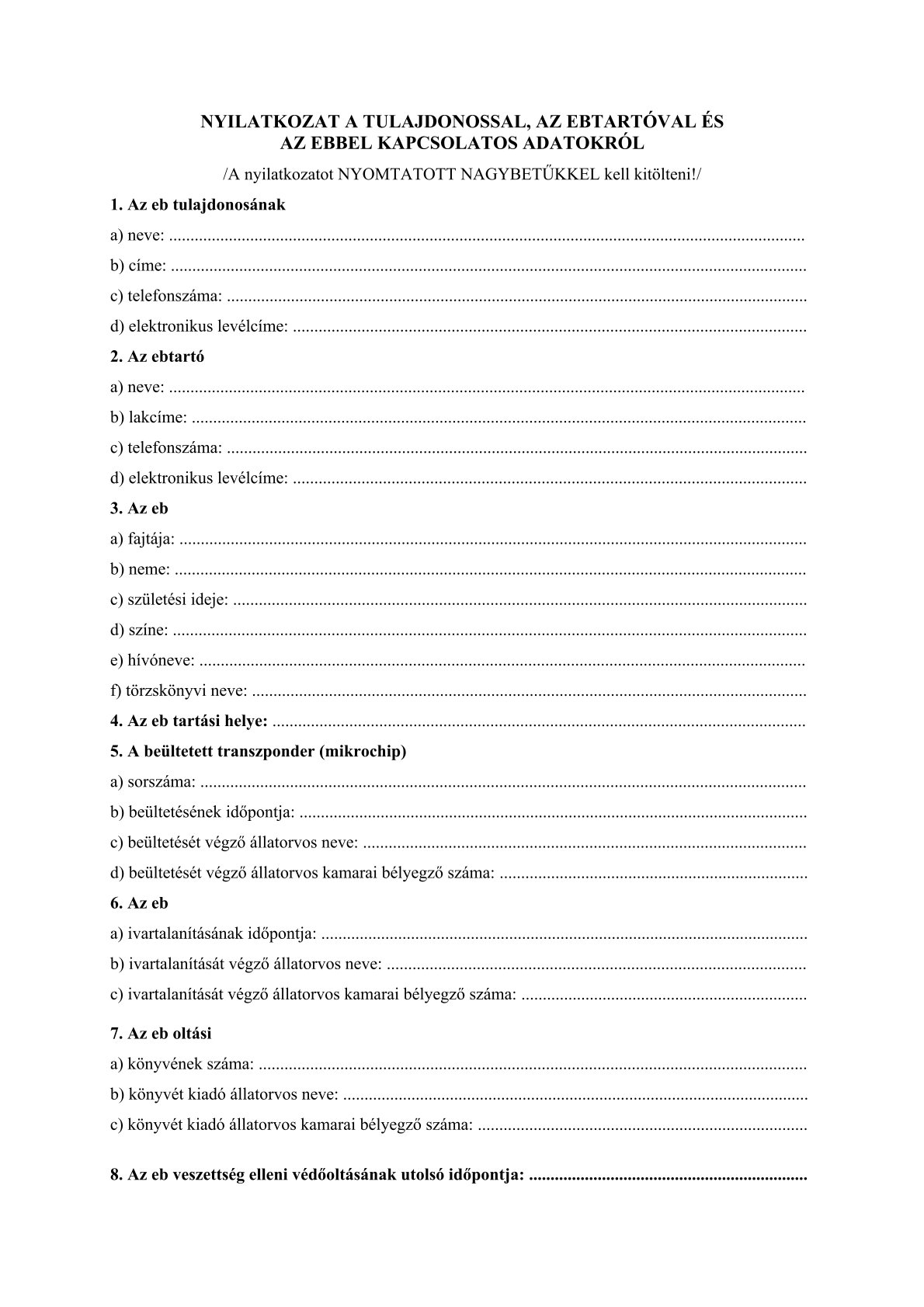 Felhívjuk a figyelmet arra, hogy minden egyes kutyáról külön nyomtatványt kell kitölteni.
