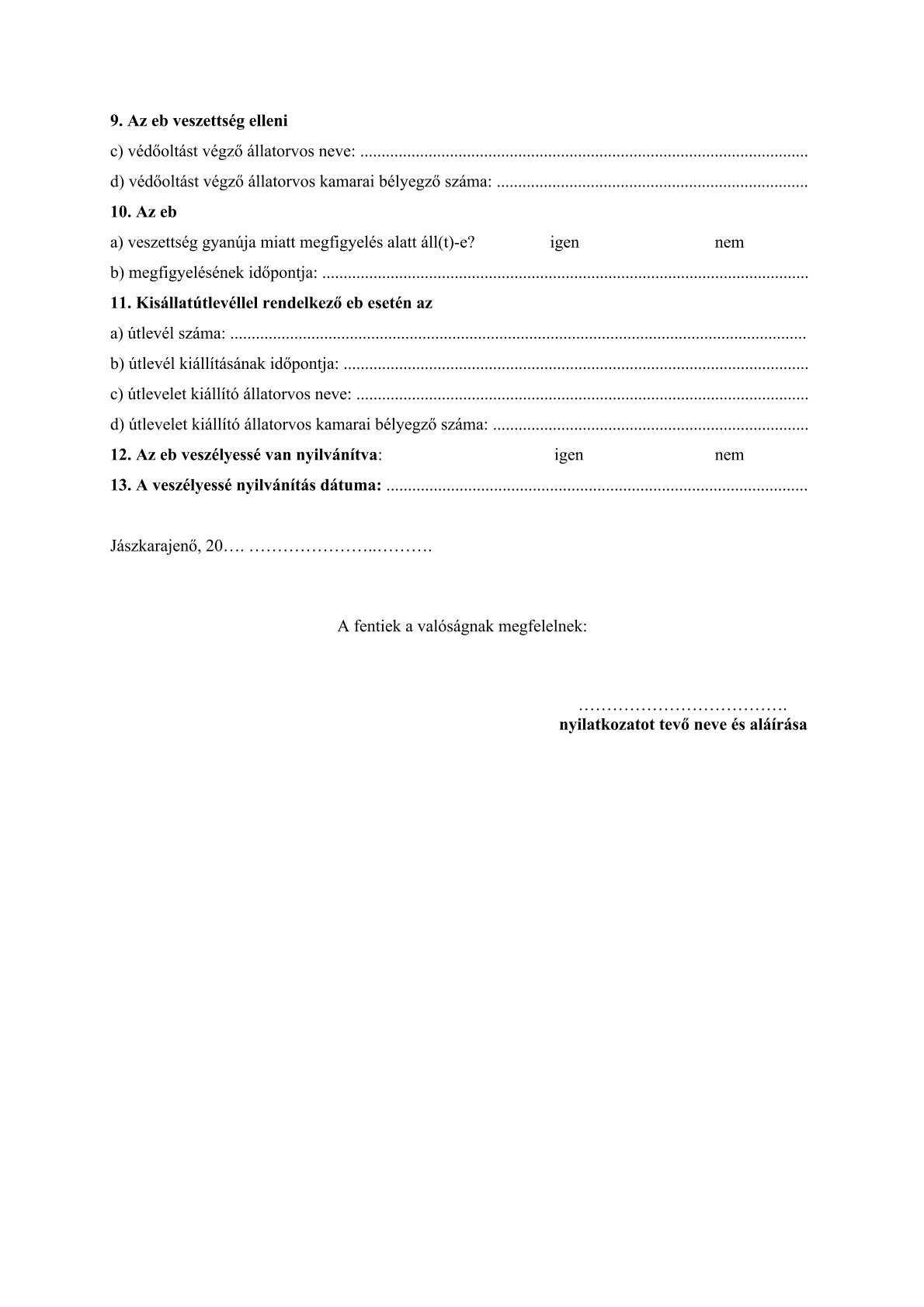 Tájékoztatjuk továbbá az ebtartókat, hogy a nyomtatvány kitöltésének és leadásának elmulasztása jogkövetkezménnyel járhat, és bírság kiszabását vonhatja maga után.